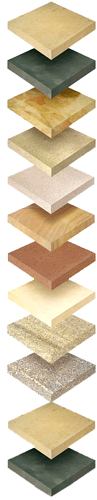 Producing a finish similar to cleft, sand blasting involves projecting a high-pressure airline coarse-grained grit, onto the top surface of the stone. It is characterized by a textured surface with a matte gloss. |